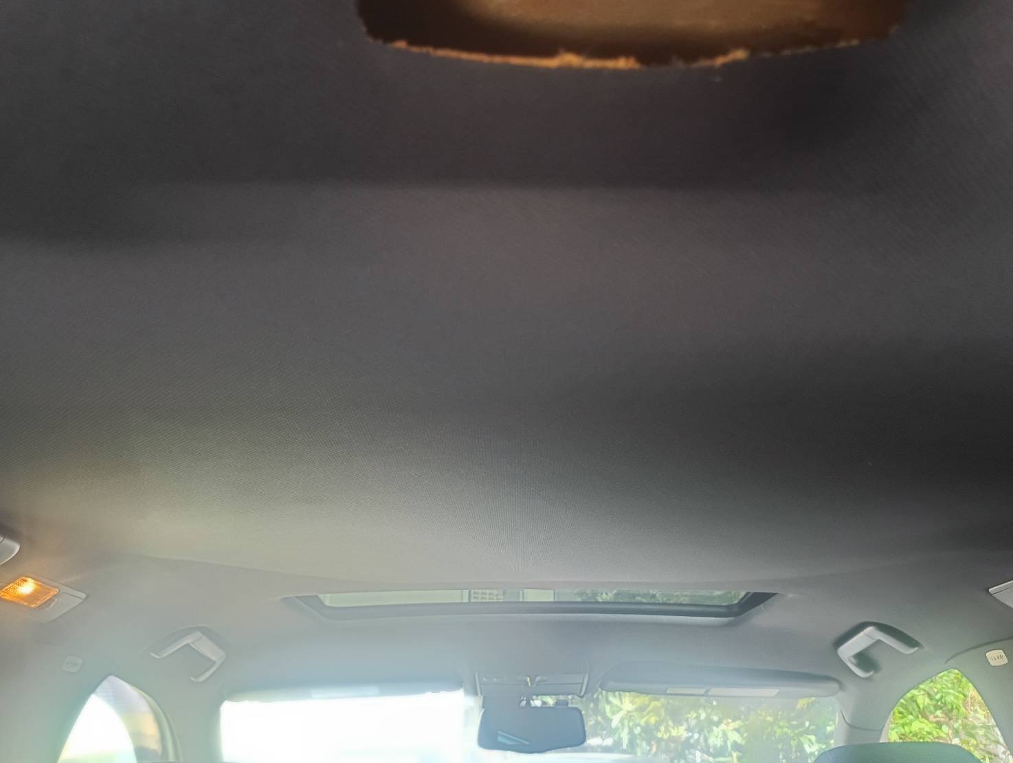 欧州系の車は天井から布のみが垂れ下がってくることが多いです。