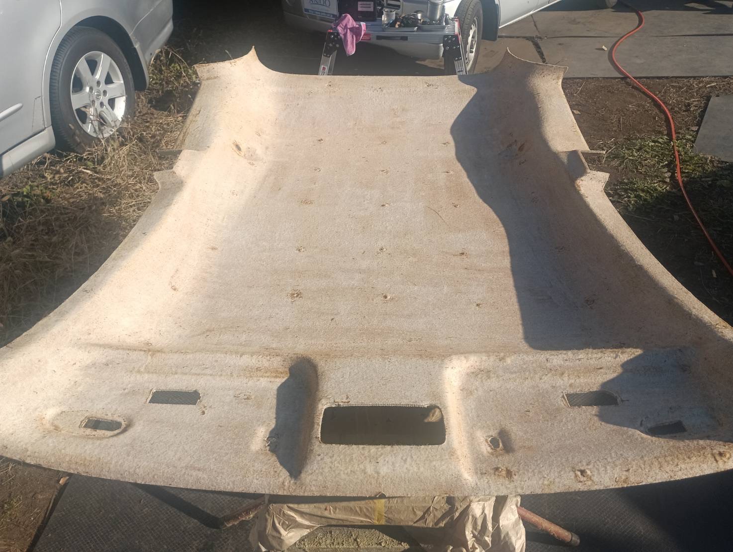 欧州系の車は天井から布のみが垂れ下がってくることが多いです。